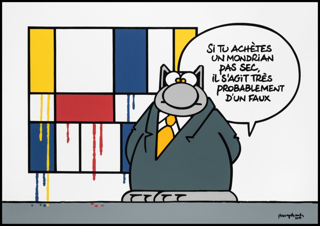 Mais cela n’est rien à côté de ce qui va lui arriver en 1983, lorsqu’il invente Le Chat qui deviendra en quelques années une icône de la bédé, le chouchou des galeries d’art et le sujet de nombreuses expositions, notamment sous forme de sculptures monumentales en bronze sur les Champs Élysées en 2022.